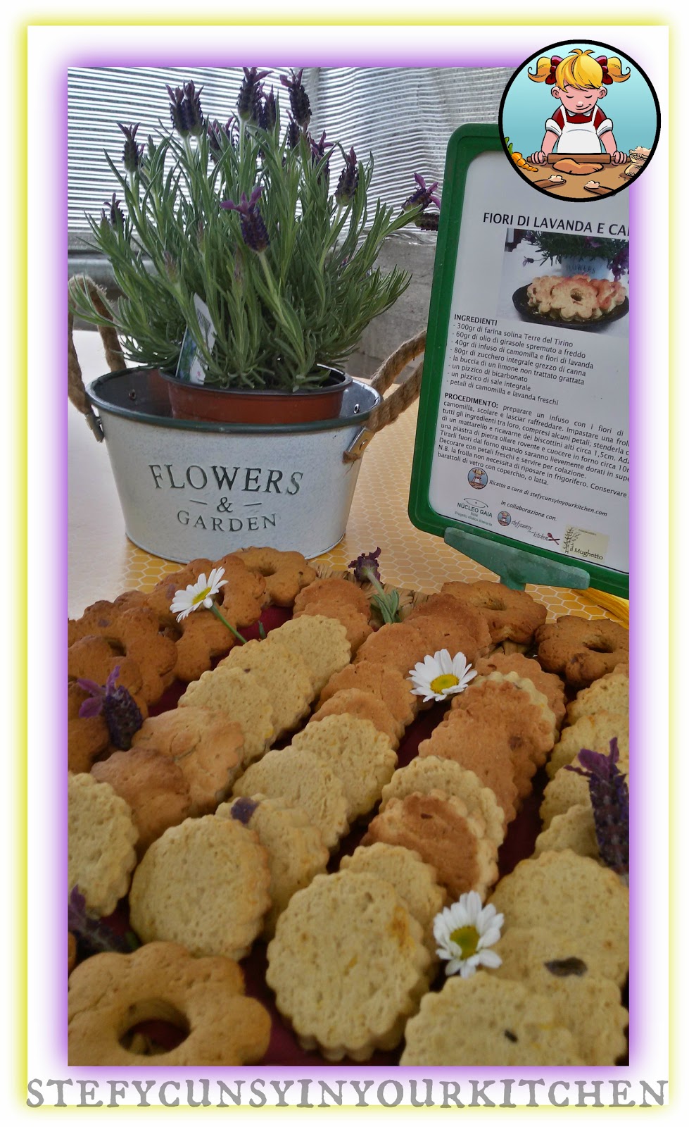 Questa sera vi propongo la ricetta di una nuova pasta frolla, alla quale ho voluto abbinare i petali di alcuni fiori di questa stagione: la camomilla e la lavanda.