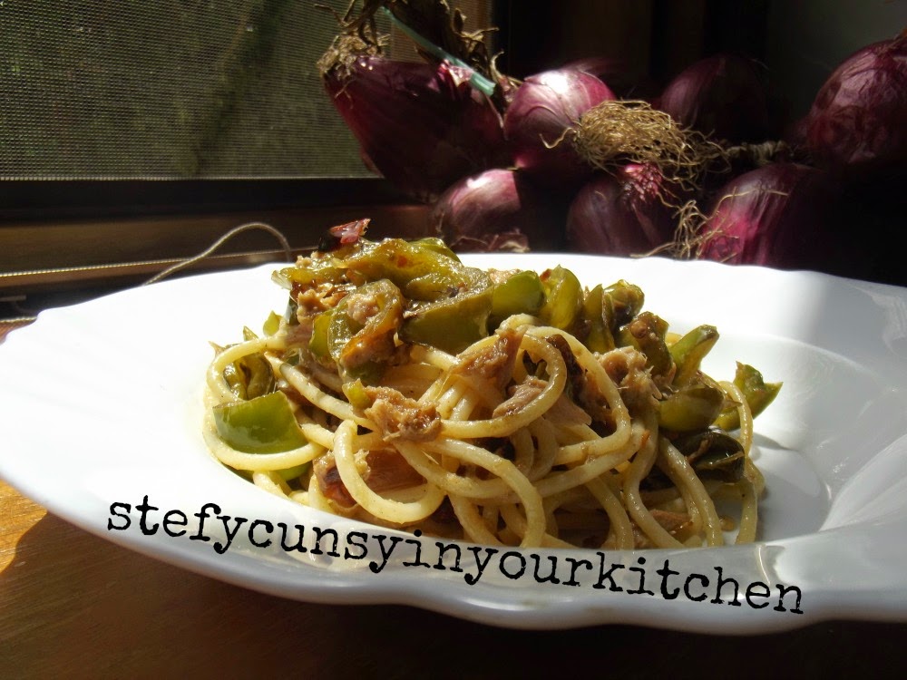 I “pipi” calabresi sono tutta un’altra musica, li ho abbinati con il tonno callipo, tipico di questi luoghi.. con spaghetti senza glutine. Ed ovviamente cipolla di tropea e peperoncino piccante. Una piccola parte del mio pranzo:
