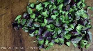 Il pistacchio si trova ovunque ormai, ma spesso spacciano quello iraniano per quello di Bronte, quindi fate attenzione. Io ho la fortuna di avere una cognata di Bronte quindi me ne fa spesso dono, portandomene direttamente dal suo paese. Resto sempre colpita dalla bellezza dei colori: viola fuori, verdi all’interno, bellissimi. Sono morbidi: il raccolto avviene ogni due anni, questi sono stati raccolti pochi mesi fa.