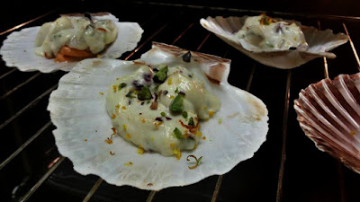 Mettere i frutti sui gusci delle capesante e ricoprire con la crema