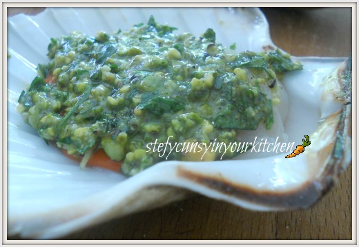 Ingredienti per 4 persone: 8 capesante, 4 cucchiai di semi di girasole, 4 cucchiai di pistacchi al naturale, basilico ed origano fresco in foglie (o erbe aromatiche di stagione a vostro gusto) 1 spicchio d’aglio, olio extravergine di oliva spremuto a freddo (ad essere pignoli bisognerebbe usare quello di girasole) ed infine sale integrale e a piacere pepe.