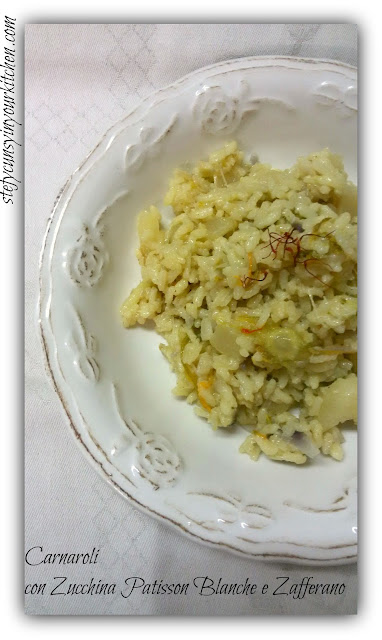 La Patisson Blanche è una varietà particolare di zucchina, molto dolce e delicata, che ho deciso di abbinare ai sapori più forti e decisi dello Zafferano di Navelli, del quale vi avevo parlato in questo post, raccontandone la storia del produttore e la Cipolla Rossa di Tropea.