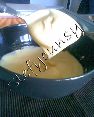 Aver cura di tenerlo IMMOBILE per i primi 10 secondi dopodichè si può iniziare a muovere su e giù. Otterrete in un minuto esatto una maionese dal sapore gradevole e soprattutto dall’ottima consistenza! Ecco la mia, la foto non è il massimo, ma dovrebbe rendere l’idea..