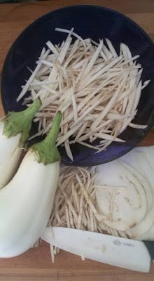 Affettiamo le melanzane e le riduciamo a fiammiferi come in foto