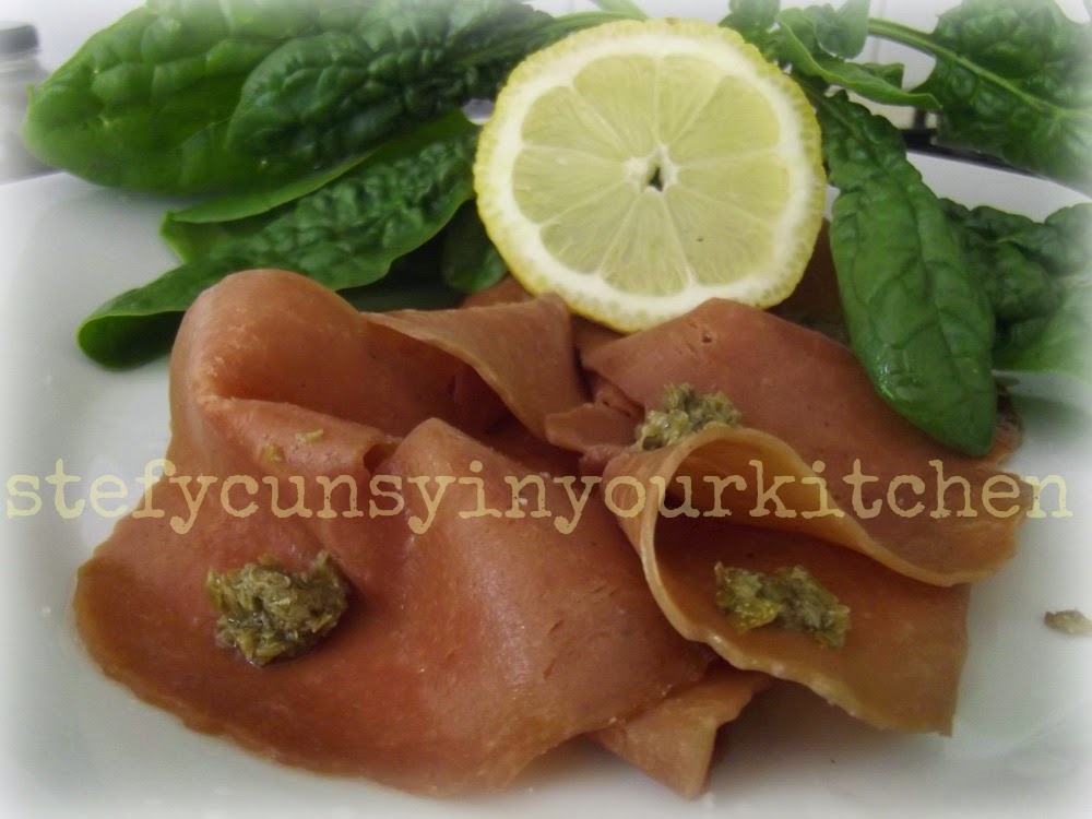Oggi ve lo presento in maniera semplice, adagiato in un piatto, da crudo, condito con sale integrale, succo di limone e senza olio, in quanto l’ho condito con delle piccole spruzzate di crema di capperi, devo dire che il connubio è stato meraviglioso, merito della crema di capperi che era davvero di.vi.na!