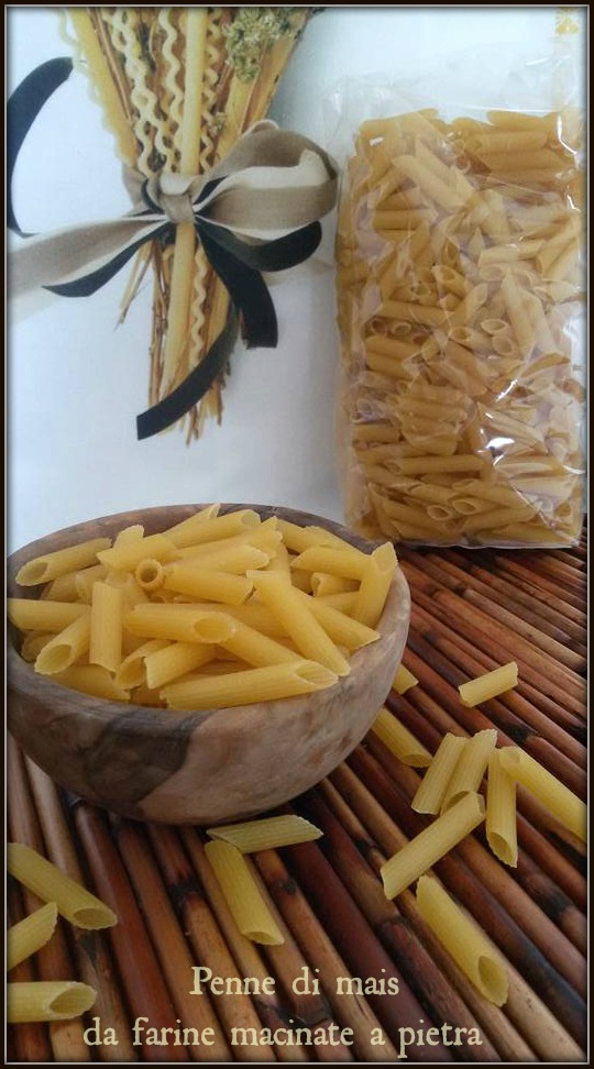 Oggi finalmente ha fatto ingresso nella mia cucina una pasta senza glutine che ho molto apprezzato. Un’azienda specializzata in coltivazione e produzione di cereali senza glutine me ne ha inviata in omaggio un pacco, chiedendomi di testarla,  in quanto trattasi di uno stock di prova. E’ quella che vedete in foto. Una pasta di mais macinata a pietra, questa è una delle particolarità che la contraddistingue dalle altre. L’azienda sta lavorando alla realizzazione di questo nuovo prodotto unico sul mercato europeo, in quanto trattasi di farine macinate a pietra. Questa ha scelto di affidarsi ad un pastificio che di norma produce circa cento quintali al giorno di pasta e la esporta in tutta europa. Il pastificio in questione possiede un impianto costruito dalla buheler, il secondo impianto funzionante costruito specificamente per la realizzazione di paste senza glutine.