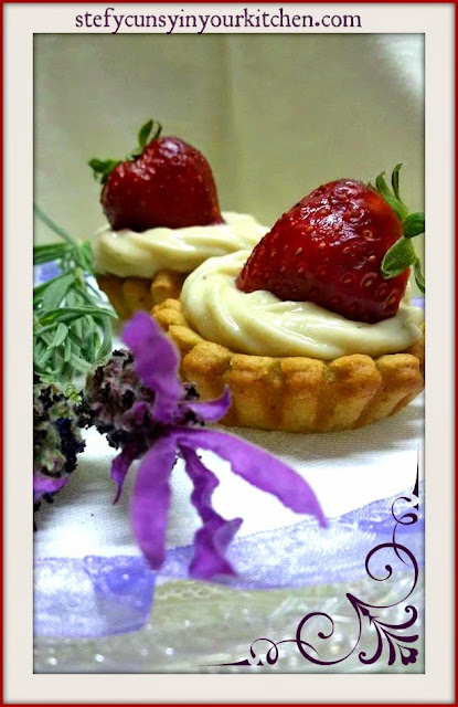 Se oggi fosse ancora qui, apprezzerebbe molto questi pasticcini di pasta frolla al cioccolato bianco e lavanda, con fragoline dolcissime… lei era molto golosa ed un’ottima pasticcera, non di professione, ma di passione, esattamente come me.