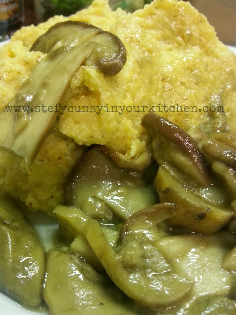Ho notato infatti, che più tempo cuoce, più diventa deliziosa ed il suo sapore quasi si eguaglia, in un certo senso, alla purea di patate. Diventa davvero un sogno, soprattutto quando sollevate il coperchio della padella con i porcini, ormai cotti e li affiancate alla polenta pronta, in una ciotola in legno di ulivo.