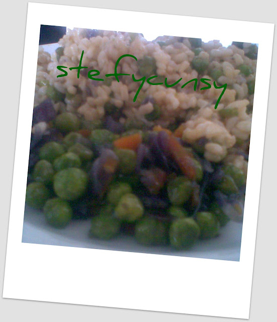 In una pentola verso due giri di olio di semi di sesamo, taglio finemente una bella cipolla di tropea e metto sopra abbondante sale integrale che farà tirare fuori alla cipolla l’acqua necessaria per la cottura.. Taglio finemente anche una piccola carota da aggiungere, fiamma al minimo e copro. Dopo pochi minuti, aggiungo i piselli e solo se necessario, pochissima acqua, coprendo nuovamente per far cuocere bene a vapore.