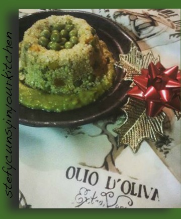 Anche un piatto genuino e salutare può essere un’ottima idea per il pranzo di Natale, basta saperlo presentare, magari con una giusta, semplice decorazione. E’ un’idea che vi presento oggi, ho preparato questo piatto in pochissimo tempo, visto che la quinoa è molto veloce da cuocere e visto che avevo raccolto i piselli nel campo durante la loro stagione, la scorsa primavera, sbollentati ed invasati, pronti ad essere consumati per l’inverno, senza dover ricorrere al freezer.