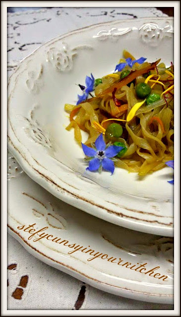 Oggi ho provato queste fettuccine senza glutine, a base di una radice chiamata Konjac, contiene molta fibra, poche calorie, zero grassi, zero zuccheri, zero glutine e vegan. Tale radice viene fatta essiccare e poi ridotta in farina, ha potere addensante e viene appunto utilizzata per preparare questa sorta di fettuccine, dette shiritaki, io le chiamerei fettuccine senza glutine!