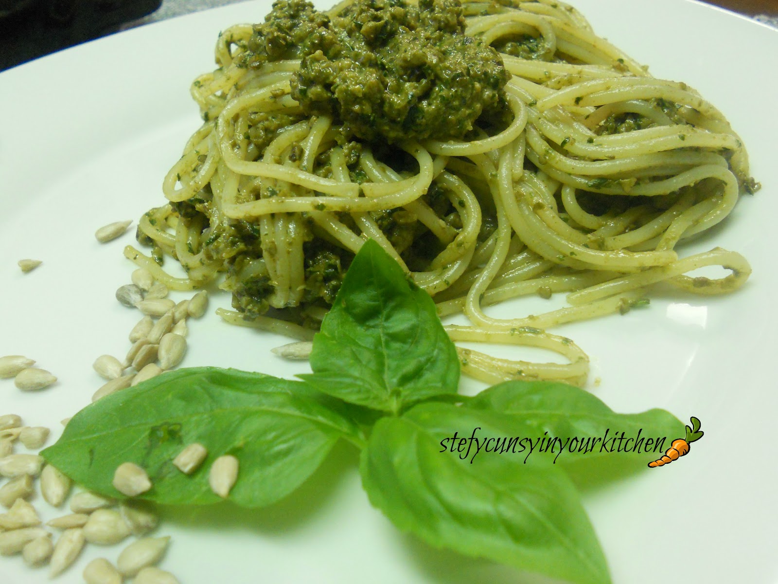 E questa sera sperimento un pesto vegan, non occorre affatto il formaggio per rendere appetibile un buon pesto di basilico!