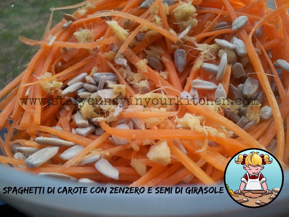 Come avete visto dalla mia pagina facebook, ieri sera ho cenato, tra le altre cose, con questi spaghetti di carota conditi con zenzero e semi di girasole.